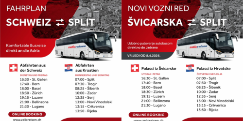 Mit unserer modernen Flotte bringen wir Sie sicher und bequem zum Ziel Ihrer Reise. Für Ihre eigenen Wünsche finden wir eine optimale Lösung.Mit unserer langjährigen Erfahrung im Bereich Linienfahrten nach Kroatien sind wir der ideale Partner für Ihre Reise nach Kroatien. Steigen Sie ein und geniessen Sie die Fahrt in einem unserer modernen Busse.Zögern Sie nicht uns zu kontaktieren gerne beraten wir Sie persönlich und unterstützen Sie bei Ihrer nächsten Planung für Ihre Reise.